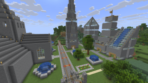 Skyscraper City is a small neighboring town, connected to Empire Rose, built by Peachy565. It features skyscrapers and a small church.